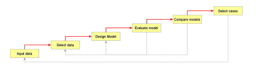 - It combines manual hypothesis testing with algorithm based (i.e. automated) searches for good performing predictive models